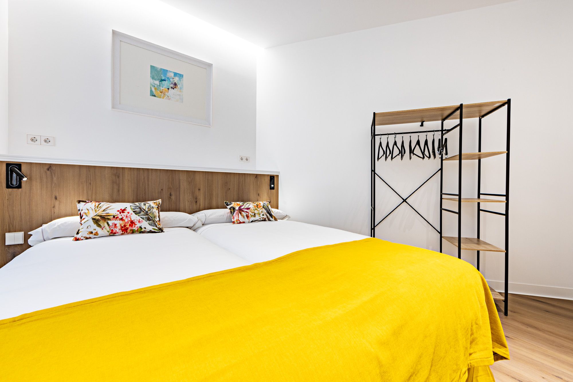 La habitación cuenta con dos camas de 90x200 cm, convertible en cama de 180x200 cm bajo solicitud.